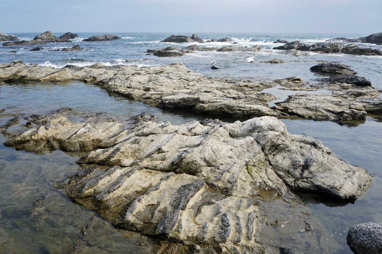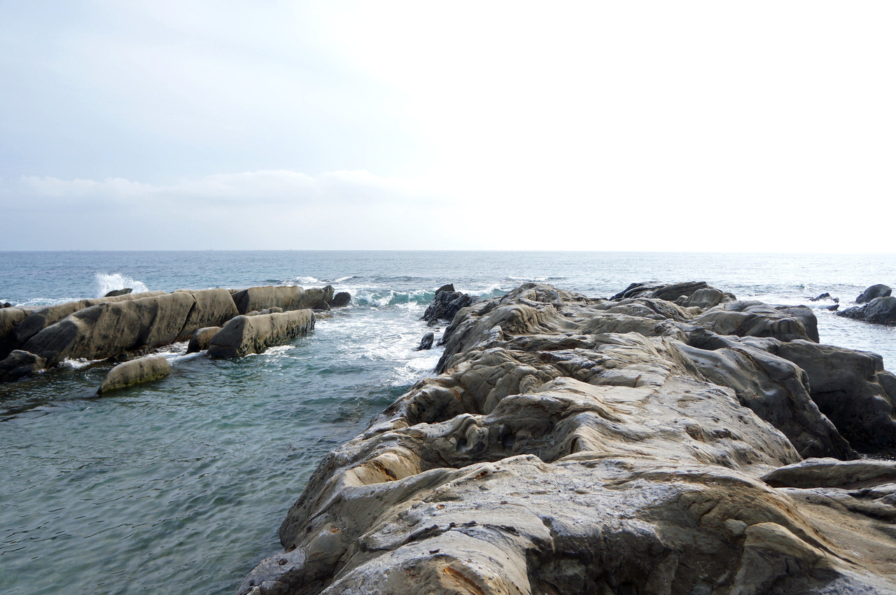 野島崎のあたりは茶色の大きな岩がゴロゴロしている。本当は野島崎の少し西側が奇岩っぽい形の岩が多いのだけれど、通り過ぎてしまったので雰囲気だけ味わって。