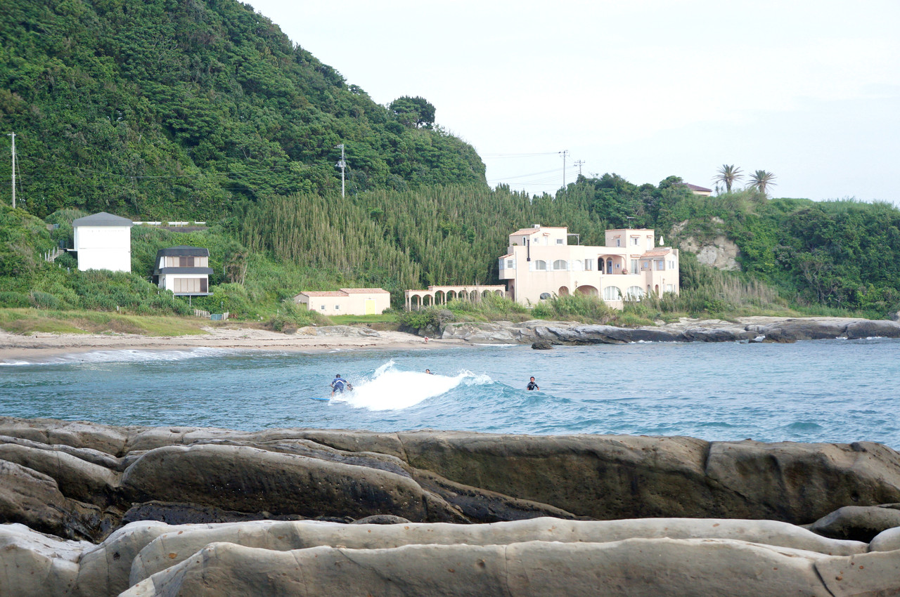 後で調べたら、ここは布良(めら)海岸という場所で、テレビドラマのビーチボーイズのロケがおこなわれたことで有名なんだそうである。といわれてもビーチボーイズというドラマを見たことはないのだが。砂浜の長さは200〜300メートルくらいと小さいが、なかなかいい雰囲気。