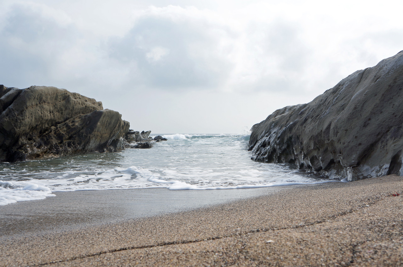 ここは中央部が砂浜で、両サイドは岩場になっている。