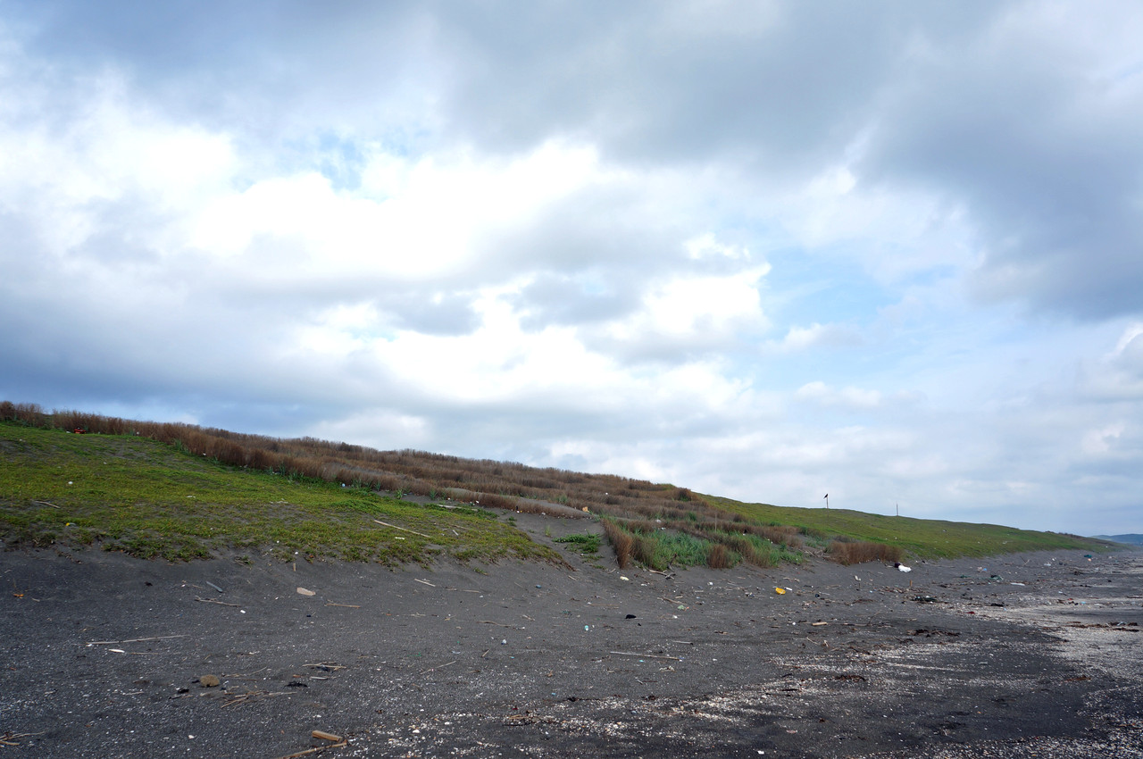 なんどかフラワーラインを走った後、ここの防風林の向こう側はどうなっているのか気になっていた。それでグーグルマップの衛星写真で確認すると延々と砂浜が広がっているではないか。なぜ海岸に出られないようにしているのかはわからないが、