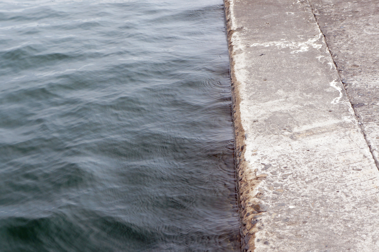 コンクリートの岸壁と海の高さがほとんど一緒!