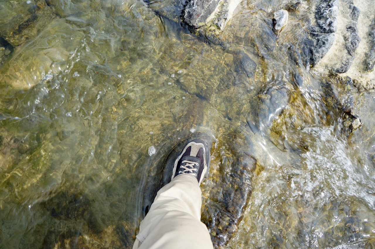 断崖絶壁ぽいのは、お約束のローアングルだからそう見えるだけというか、ワザとそう見えるように撮った。実際の岩の高さは1メートルくらい。