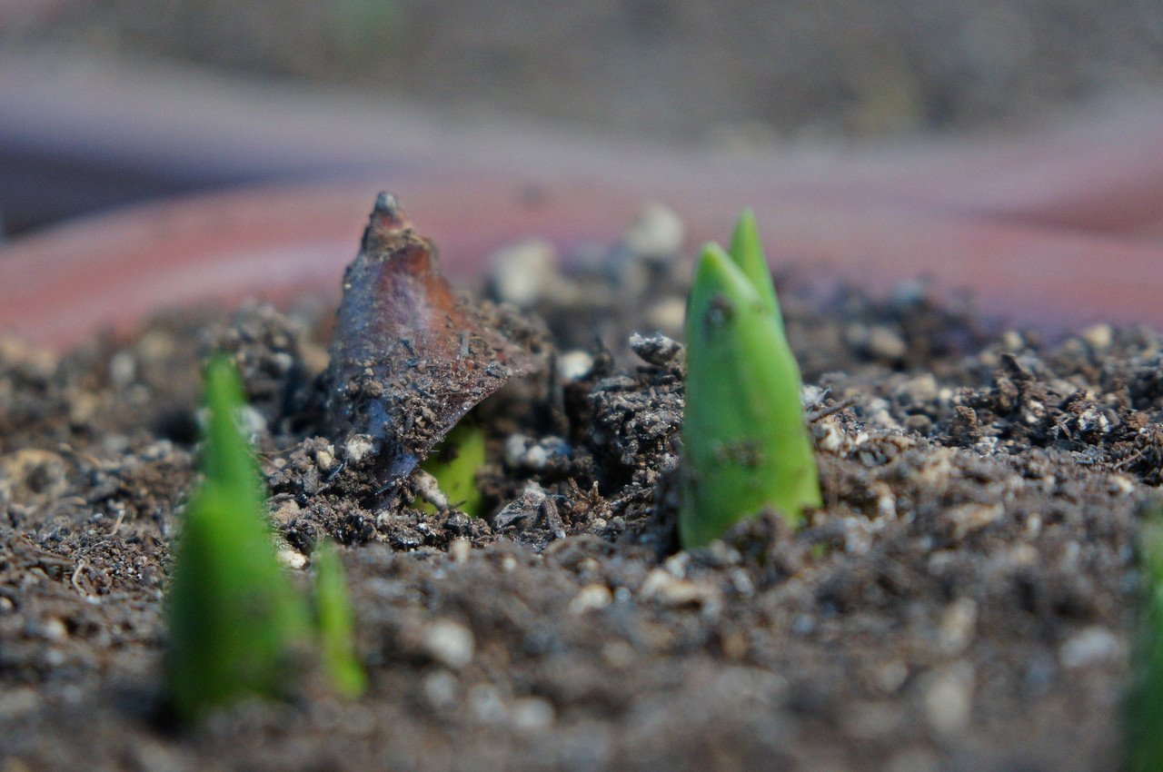 今シーズンは少し早めの11月8日に植えたチューリップ。クリスマスに最初の発芽を確認してから1ヶ月が過ぎた。絶対数は少ないものの、現在は8つあるプランターのすべてで発芽が見られる。