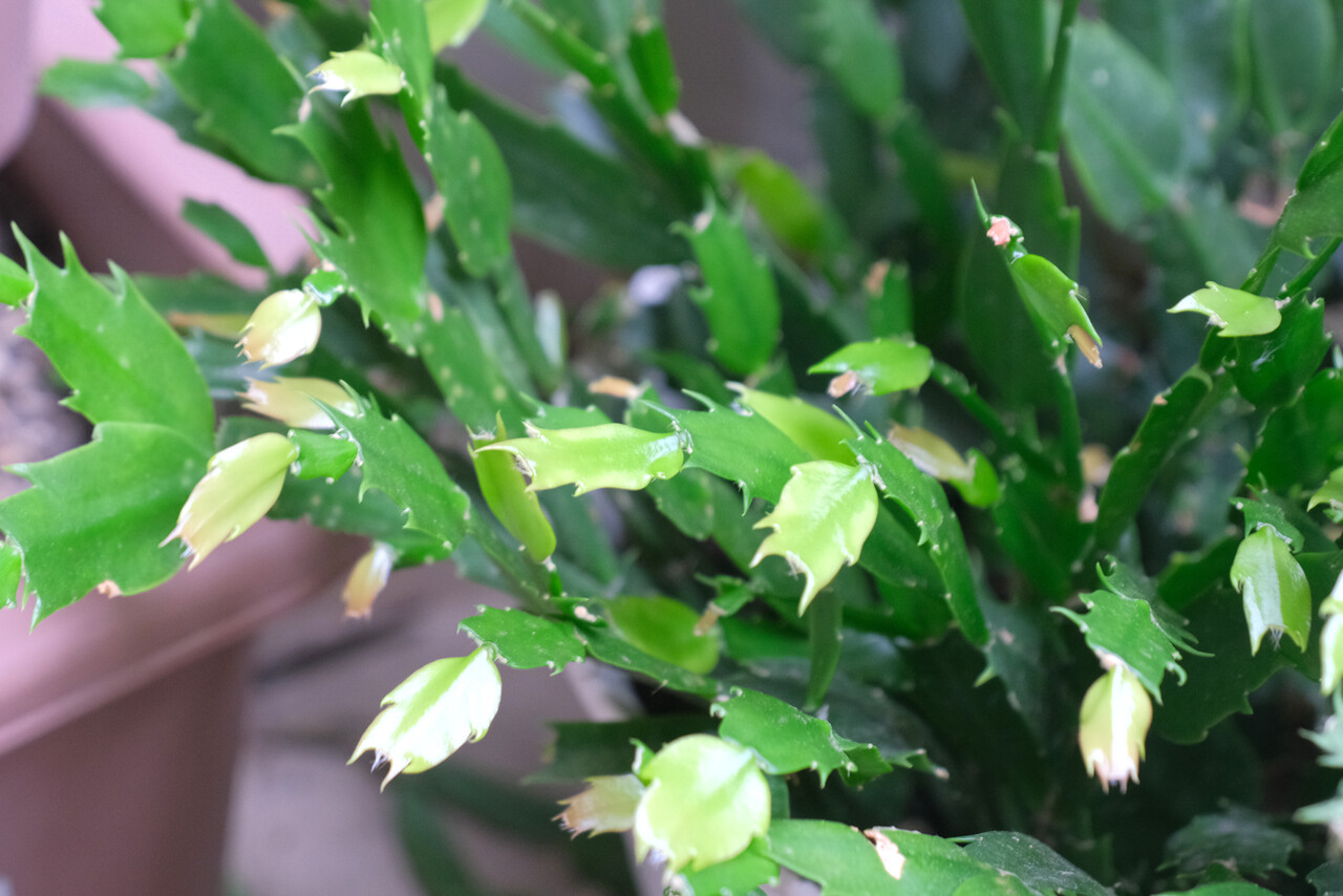 5月に剪定と挿し芽をしたクリスマス・カクタス。たまの土の入れ替えを除けば毎年の作業はそれだけであるが、今年は「9月になって伸びてきた新芽には花芽がつかないので摘み取る」を初めて実行してみた。以前はそんなことをしなくてもたくさん花を咲かせたのに、最近は花数が少ないから。