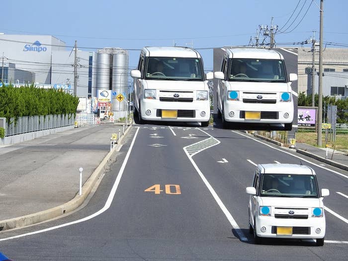 後ろのクルマは合成だけれど、その画像サイズは前のクルマと同じだという。
