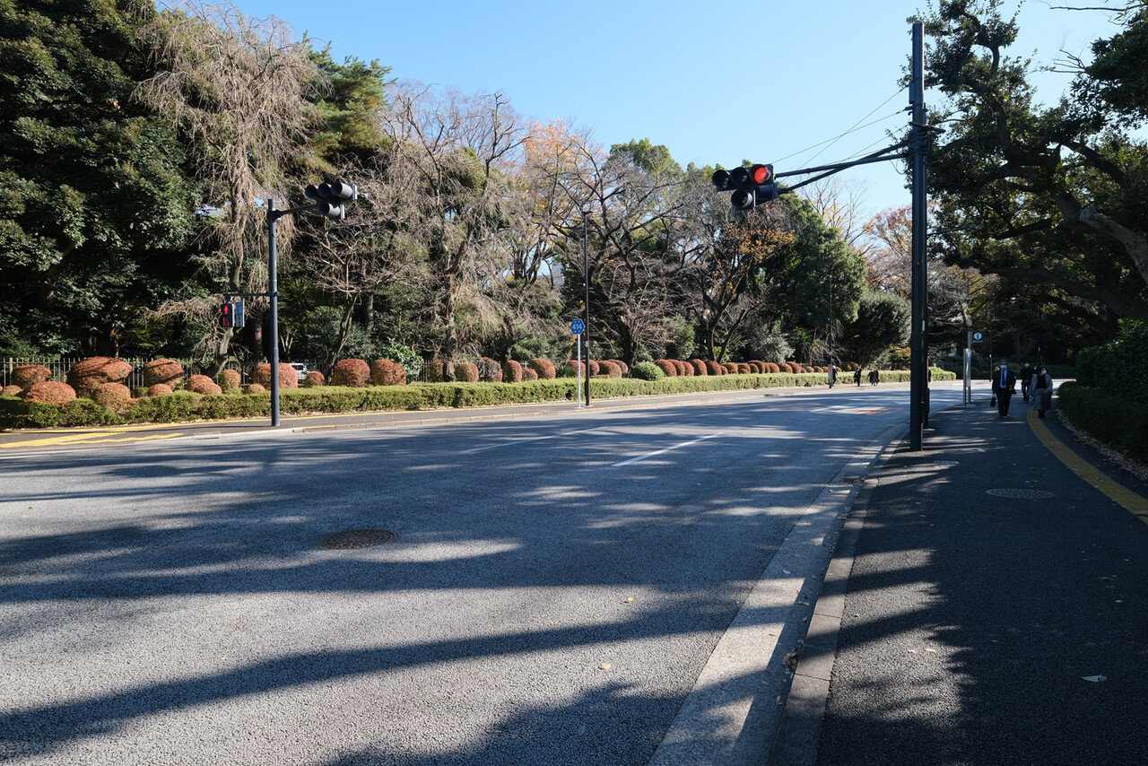 ほとんど新築未入居状態の国立競技場をフェンス越しに少し見た後は、そのまま引き返して外苑の周回道路まで戻る。信号を戻った先は聖徳記念絵画館の西出入り口。