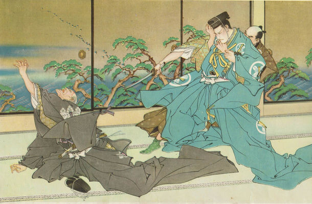 赤穂浪士討ち入りの発端は藩主である浅野内匠頭長矩(あさの・たくみのかみ・ながのり)が、江戸城の松の廊下で吉良上野介義央(きら・こうずけのすけ・よしひさ)に切りつけた事件。ミドルネームっぽい内匠頭や上野介は官職名ね。