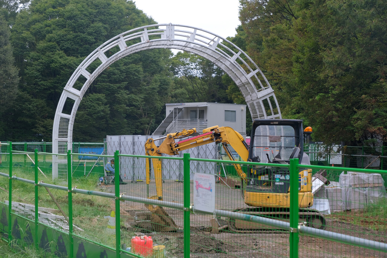 この白いアーチはパノラマ広場のはずれにあるバラ園のもの。これは噴水池周辺とは別の工事のようで工期は今年の6月〜10月。バラが充実するのだろうか?