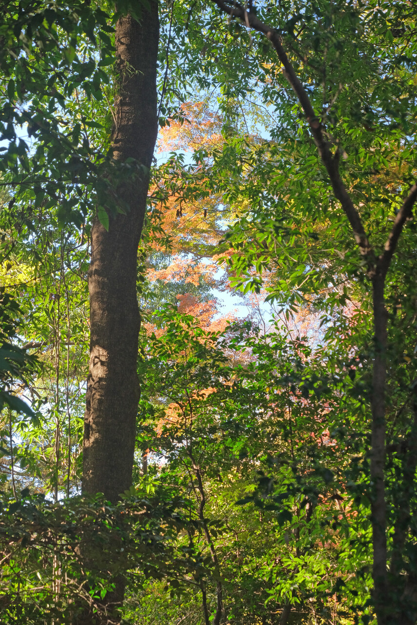モミジが紅葉していれば九品仏の東門をくぐると、自由が丘から徒歩10分とは思えないほどの異空間が広がっていて、まるでワープしたみたいな感覚を味わえる。しかしその時はまだ紅葉しておらず普通の光景。それは訪れる前にわかっていたとしても、いつもワープ感覚を楽しんでいたので少し残念だった。