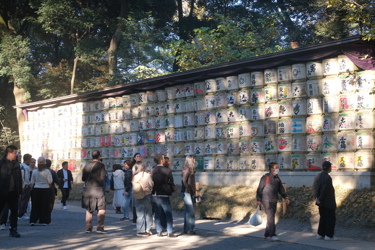 毎度おなじみの酒樽と、その向かいのワイン樽。酒樽はどこの神社にもあるがワイン樽は珍しい。これは明治天皇がワイン好きだったにの由来しフランスのワインメーカから奉納された。