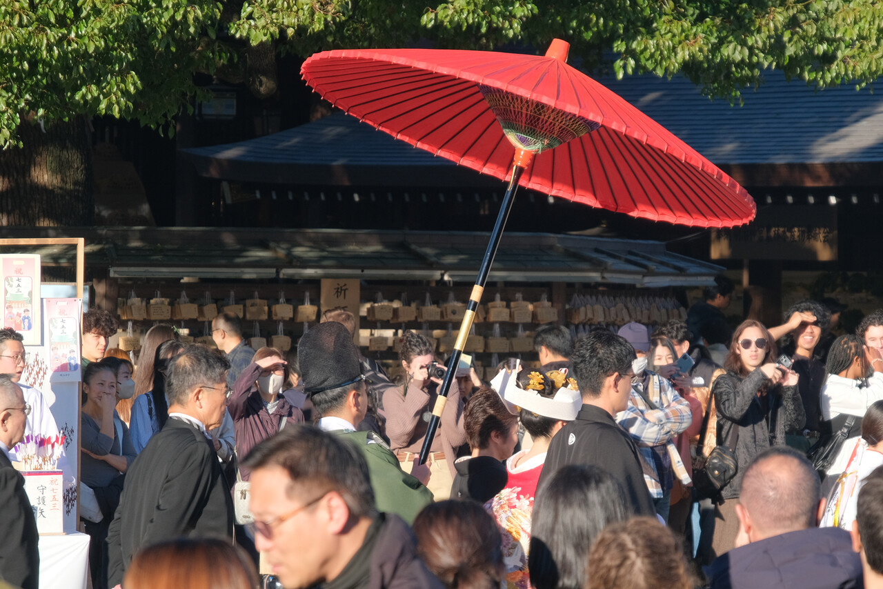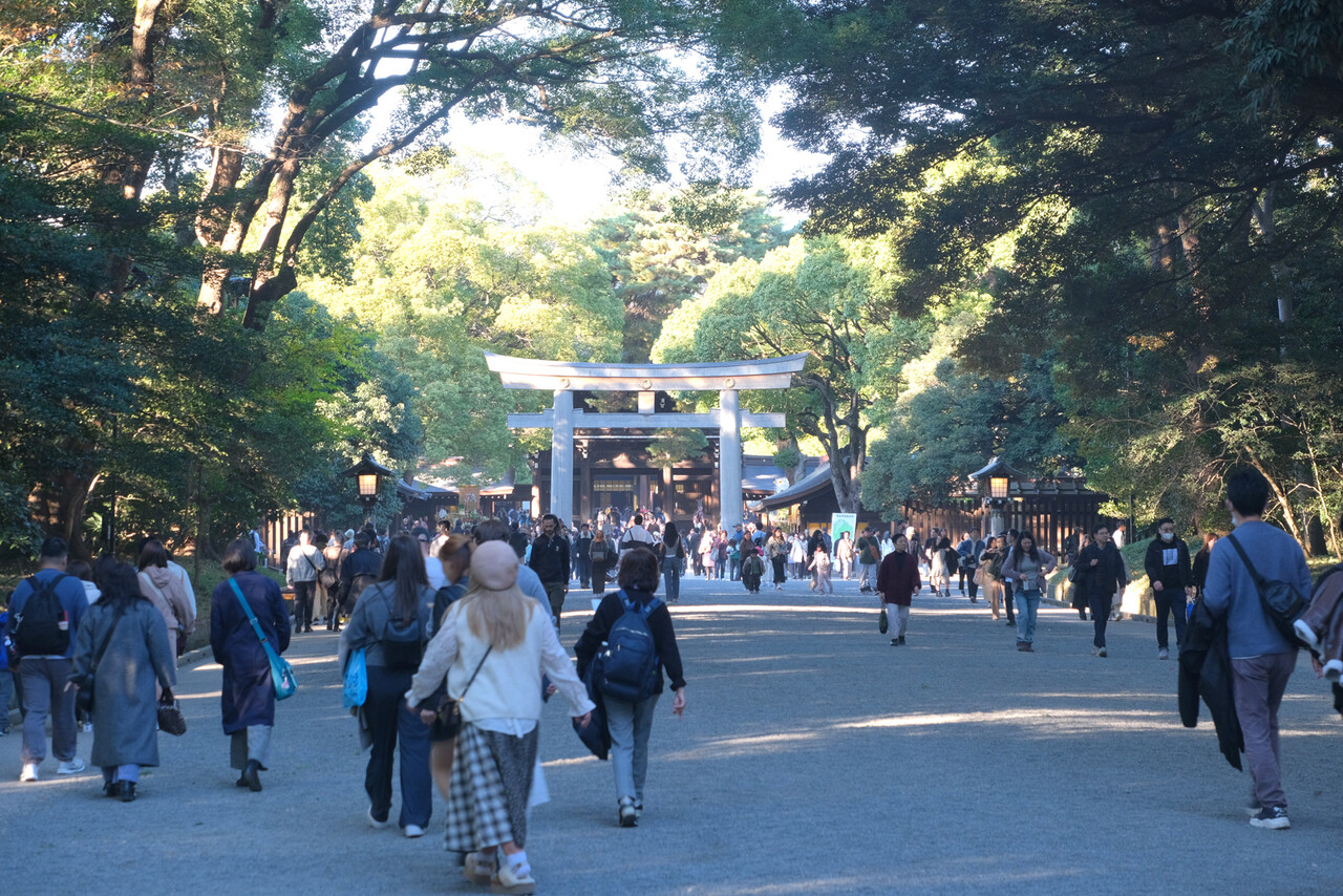 この日の最高気温は18.8度とそこそこ暖かかったものの季節は11月の終わりである。ちなみに最低気温は7.6度で午前10時は13.7度。それなりに暖かい服装が必要。でも必ずいるんだよね外国人で半袖短パンの人。この日は明治神宮だけで10人ほど見かけた。