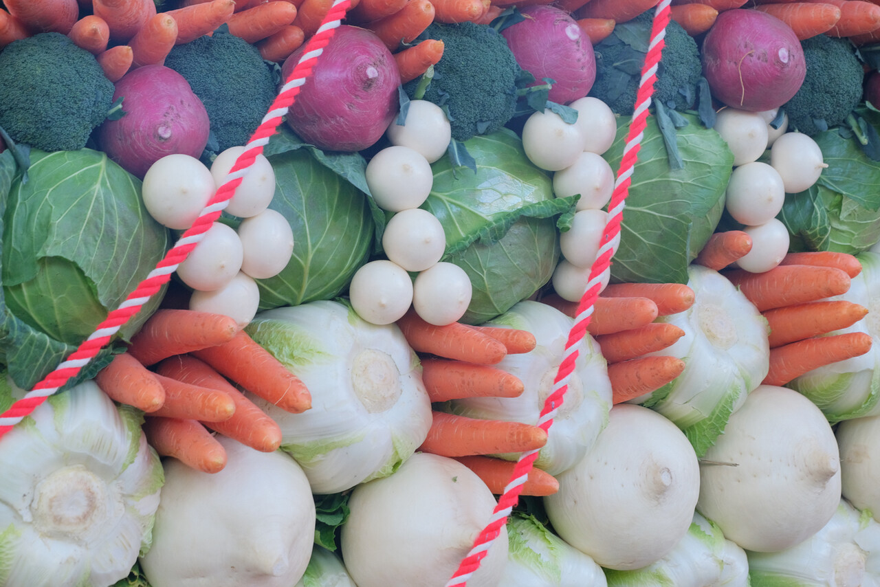こちらのほうが赤キャベツや黄色いカリフラワーが使われていてカラフル。