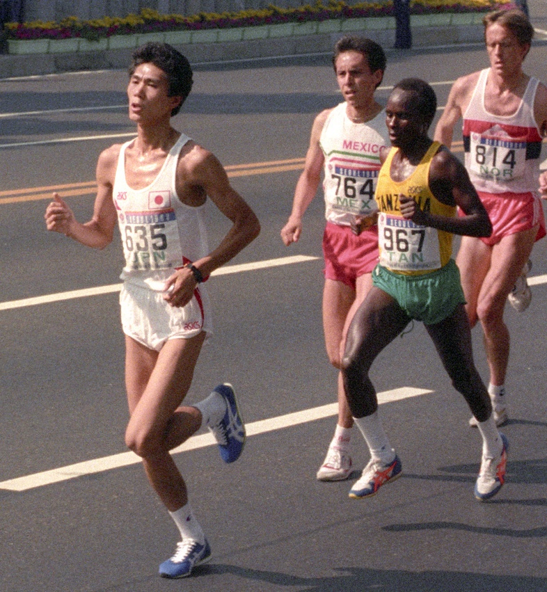 1992年バルセロナで「こけちゃいました」の谷口浩美はソックスをはいていないが銀メダルの森下広一はハーフ丈。この大会は「こけちゃいました」のインパクトがあまりに強すぎて森下の銀メダルより有名なのは歴史の皮肉。